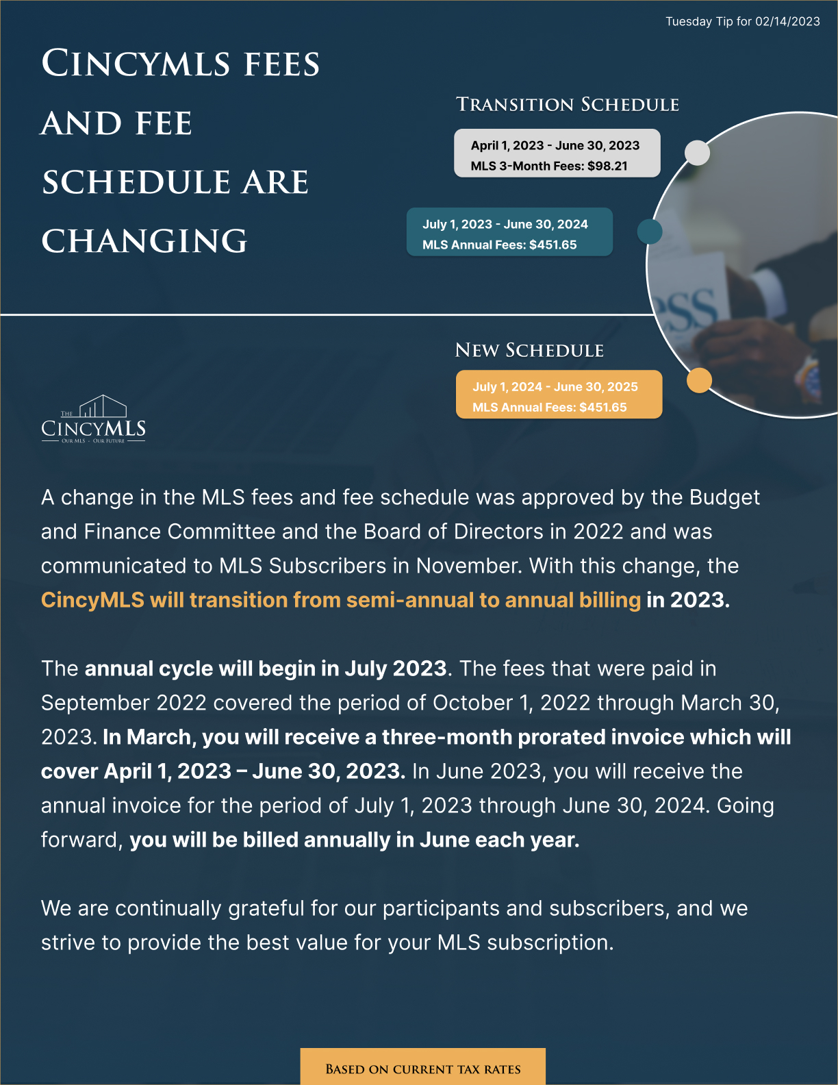 pdf Tip #95 - CincyMLS Fees and Fee Schedule is Changing ( jpg, 1.28 MB ) (2047 downloads) Popular